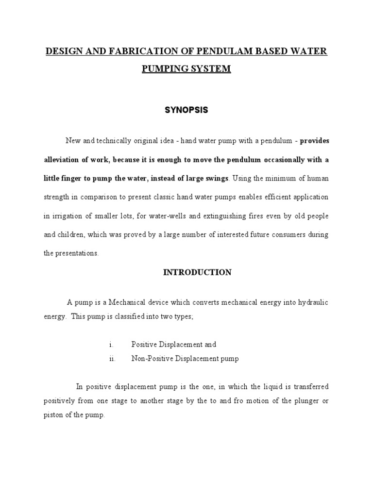 31.pendalam Based Water Pumping System PDF Pump Pendulum